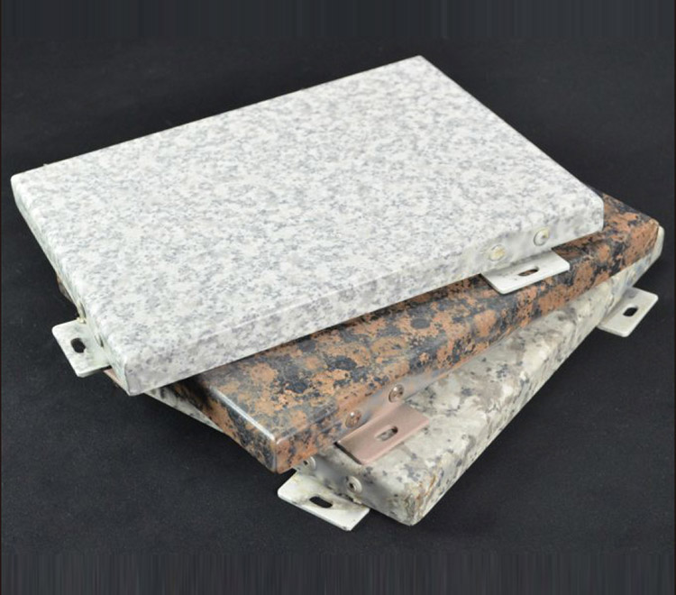仿石纹氟碳铝单板的主要特征是铝单板表面逼真的石纹色,装饰效果喜人,且质量轻、安装方便,几乎可以替代大理石这种幕墙材料。它主要通过热转印等工艺,把石纹色转印到铝板表面,然后再喷上氟碳罩光漆,经过多次喷涂和烘烤,终客户定制的石纹效果。