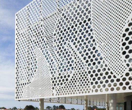 穿孔铝单板是铝单板的一种细化产品。具有良好的加工性能,其稳定的特性为板面加工提供了多种类别的选择,色彩多样,且能够适应多类较为复杂的形状设计。其良好的加工性能方便了 人员将其加工成为多种形式的线条。所以在选择上,穿孔铝单板为设计人员提供了一个更为 丰富的设计创想空间。