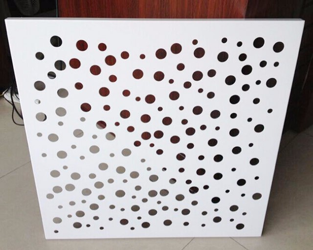与常规铝单板相比,冲孔铝单板的特征就是表面形状各异的冲孔(包括圆孔、方孔、五角星、六边形孔等),装饰效果突出,也能够在一定程度上起到降低噪音的作用。集装饰性与实用性于一体,冲孔铝单板在工程装饰中使用的越来越多。